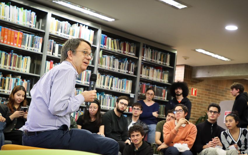 Durante su visita, Cornell conversó con Andrés Reyes, editor de nuestra Revista Hipótesis y profesor en el Departamento de Física de la Universidad de los Andes, acerca del impacto de sus investigaciones que lo hicieron merecedor del galardón.